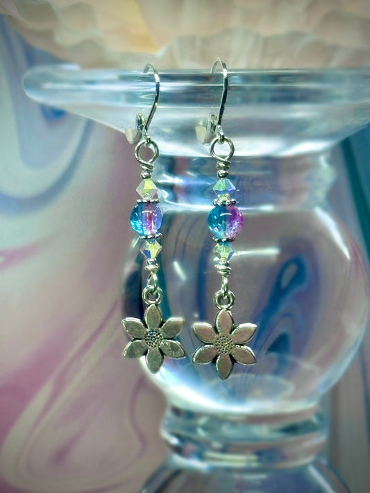 Adorable Crackle Bead Flower Earrings